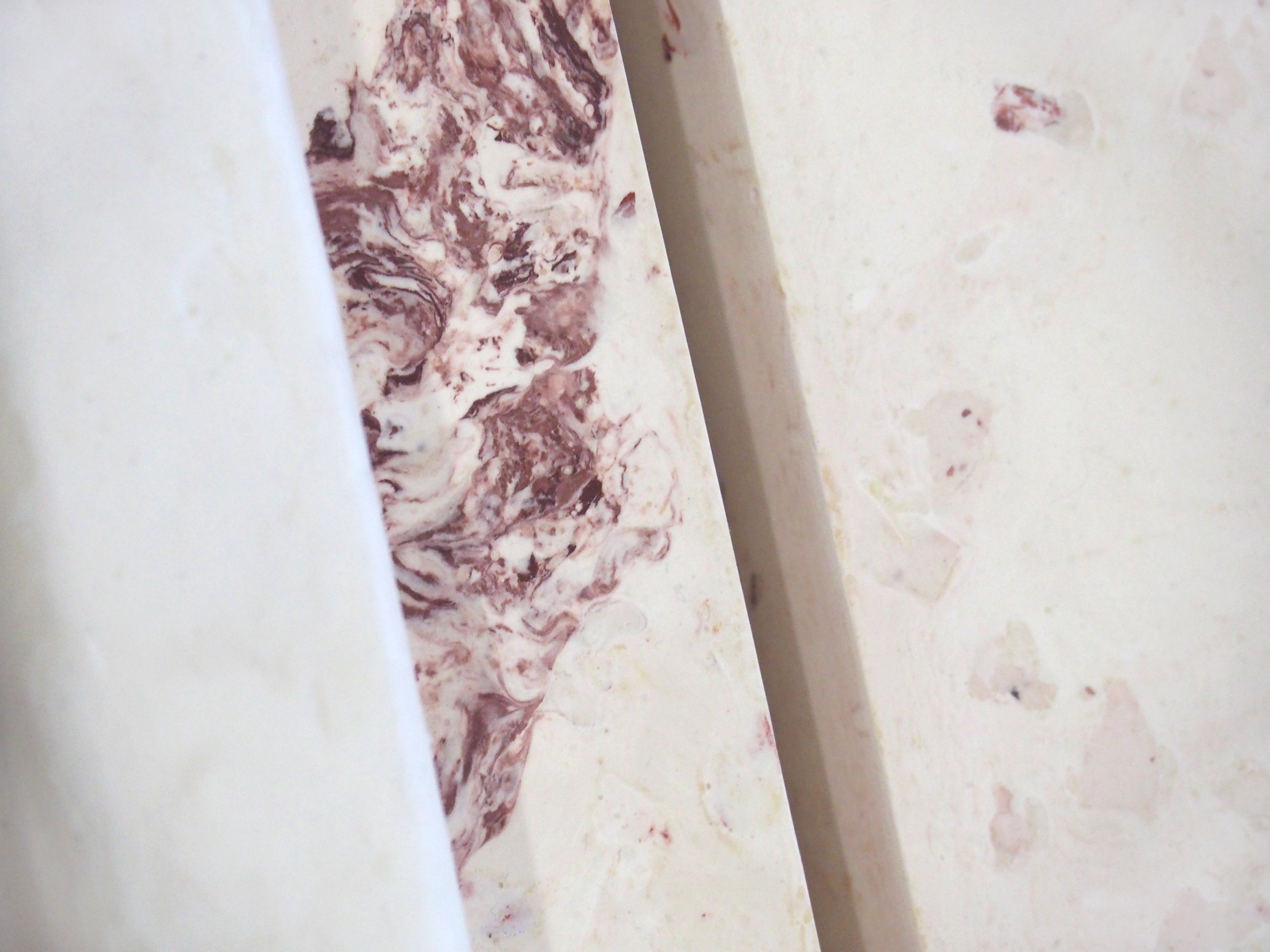 Sans titre (vides précaires), savon glycériné, scagliola (plâtre, pigments), dimensions variables, 2023.