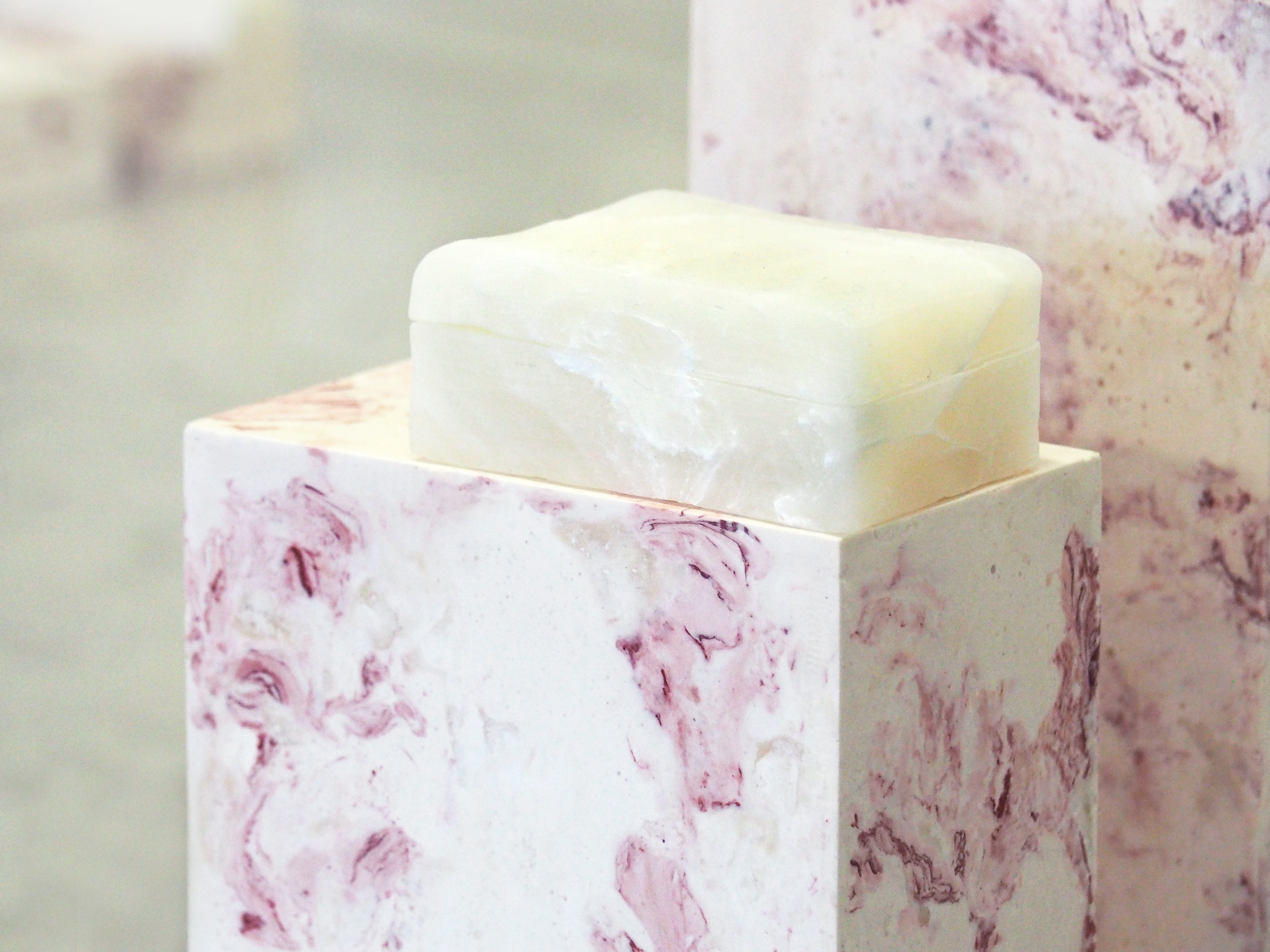 Untitled (precarious voids), soap, scagliola (plaster, pigments), variable dimensions, 2023.