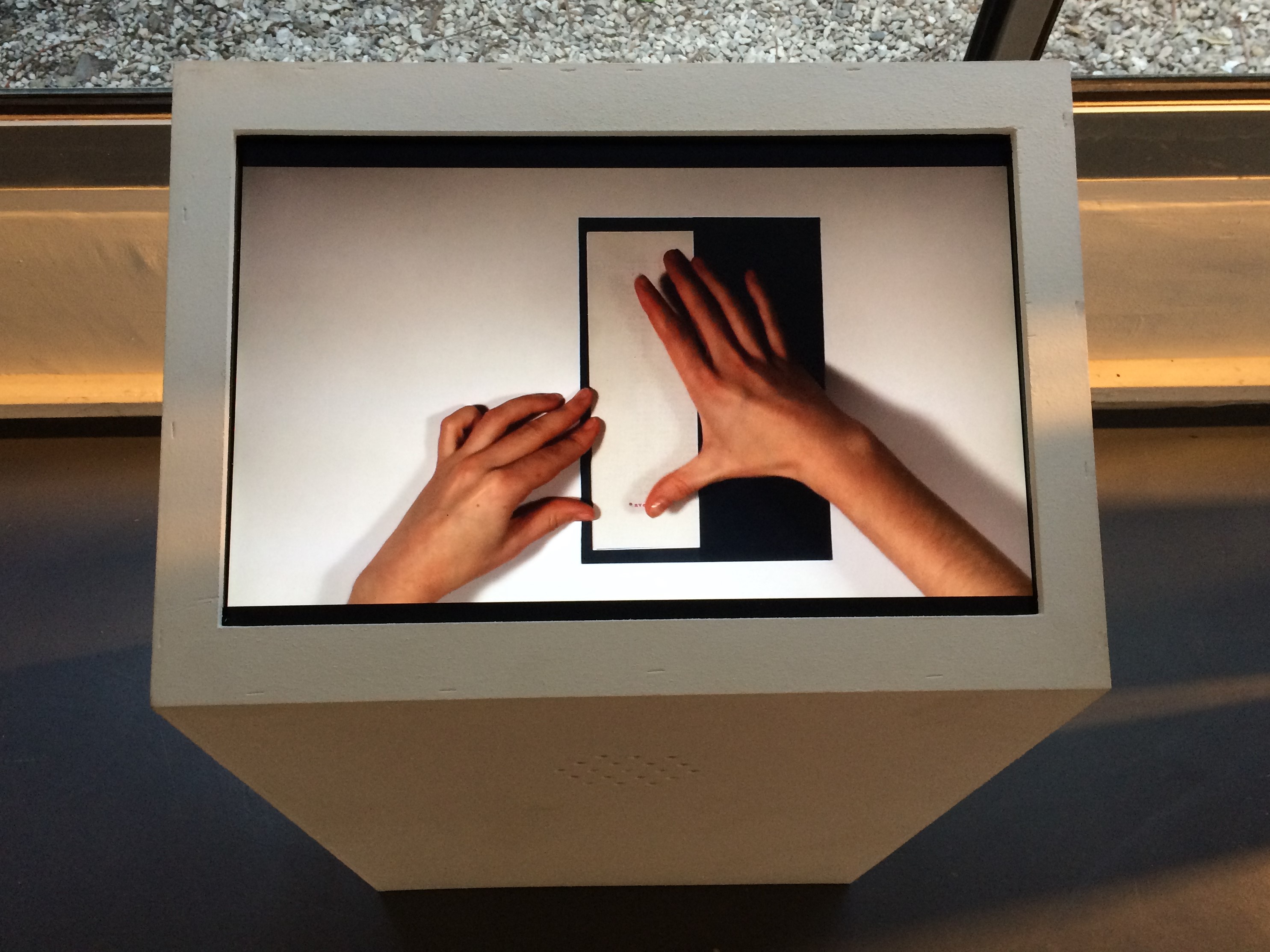 | Vidéo : lecture d’un texte-édition performative, 2017 Video-reading of a performative book, 2017 L’édition envers. encore. est un objet performatif, pouvant se déployer sous forme de performance, ou bien sous sa forme vidéo. Sur chacune des pages figurent quelques mots ou phrases qui, dans un mouvement parfois tautologique, dictent l’action du lecteur, guident sa manipulation du livre-objet. Au fil d’une succession de renversements discrets, le livre tente de présenter l’envers des choses. Chercher en vain l’endroit de l’envers – cet « envers » qui figure sur la 1ère de couverture, et qui bientôt laisse place à l’« encore » de la 4e de couverture – injonction à recommencer, encore et encore. Ainsi, au dos de l’« envers », pas d’« endroit ». Comme si au moment du dévoilement de quelque pan caché, invisible, l’objet incompréhensible, absurde nous étant soudain donné à voir, ne constituait finalement qu’une invitation à poursuivre la recherche. |